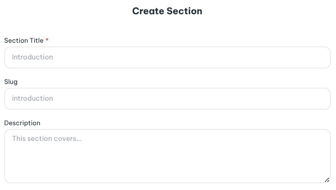 Open your course and add lessons. Start with a title and slug, then add your content: