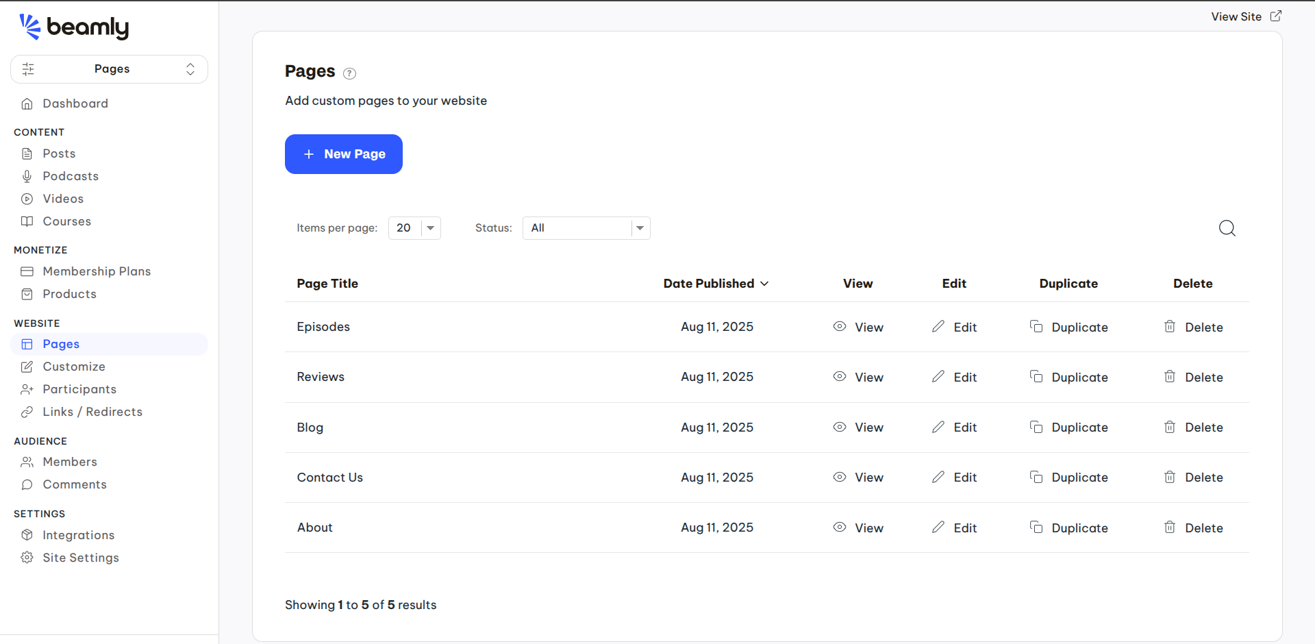 To add new pages to your site, and remove or modify existing ones, go to the Pages screen -