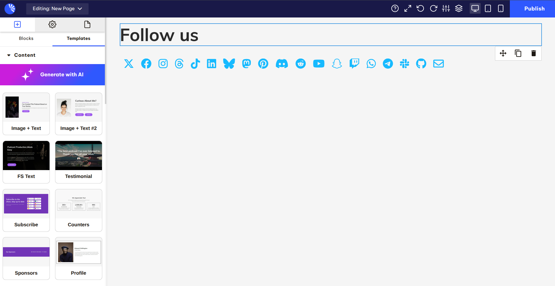 To use any of these templates, simply drag one of them onto the page, it'd render on your page right away so you can start tweaking the content and publish.