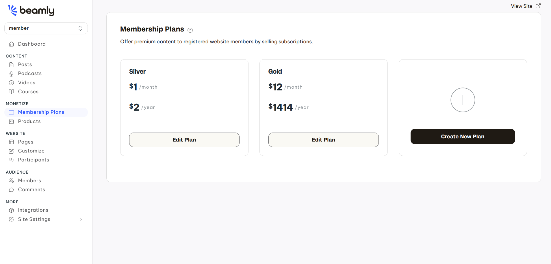 You can easily edit your Free plan or create new paid membership tiers.